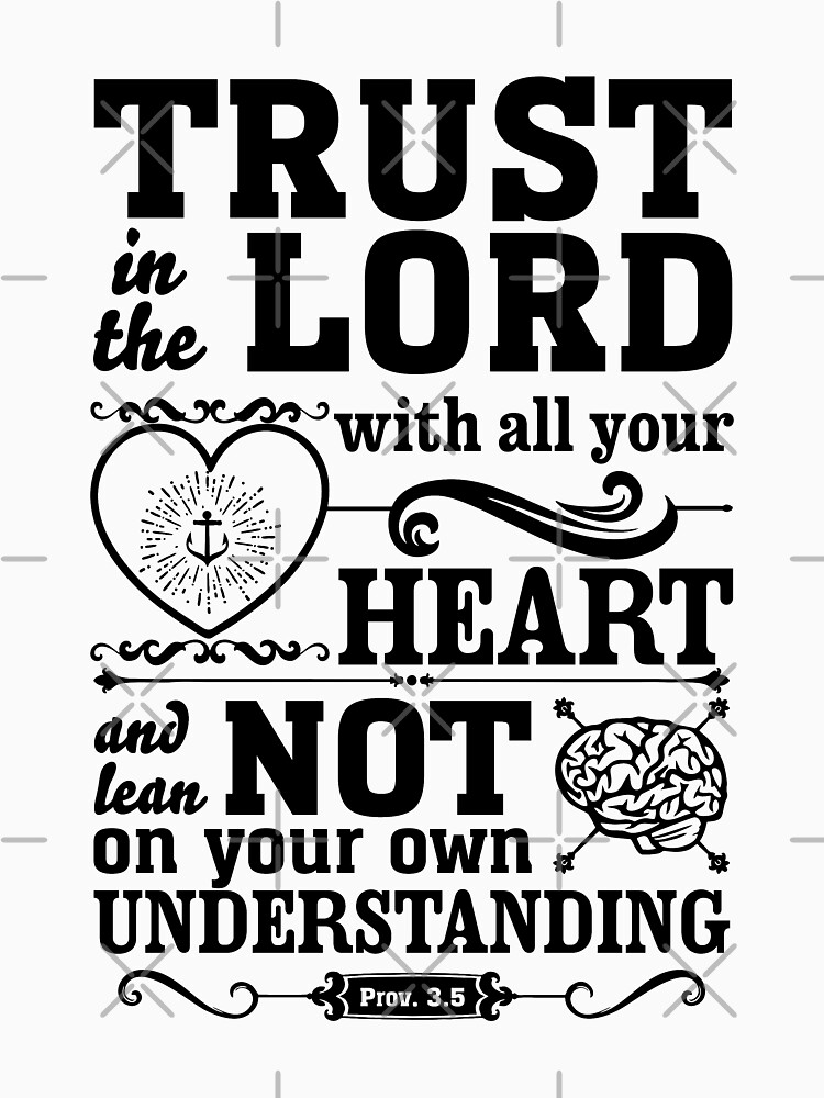 Trust in and rely confidently on the lord with all your heart and do not rely on your own insight or understanding. In all your ways acknowledge him, and he will make straight your paths. 8 it will be healing to your flesh b and refreshment c to your bones. Trust in the lord with all your heart, and do not lean on your own understanding.