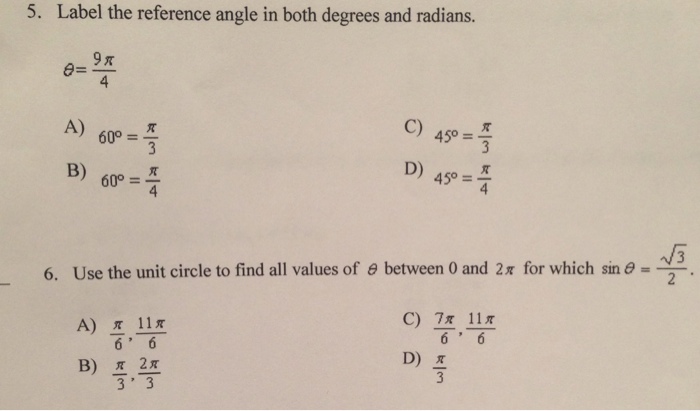 How to find reference angle in radians. This trigonometry video tutorial explains how to find the reference angle of any angle in any quadrant. Enter angle in radians and press the convert button (e.g:0.5, π/2, 3π/2) How to use a slash to describe two options, one of which is made up of two or more words?